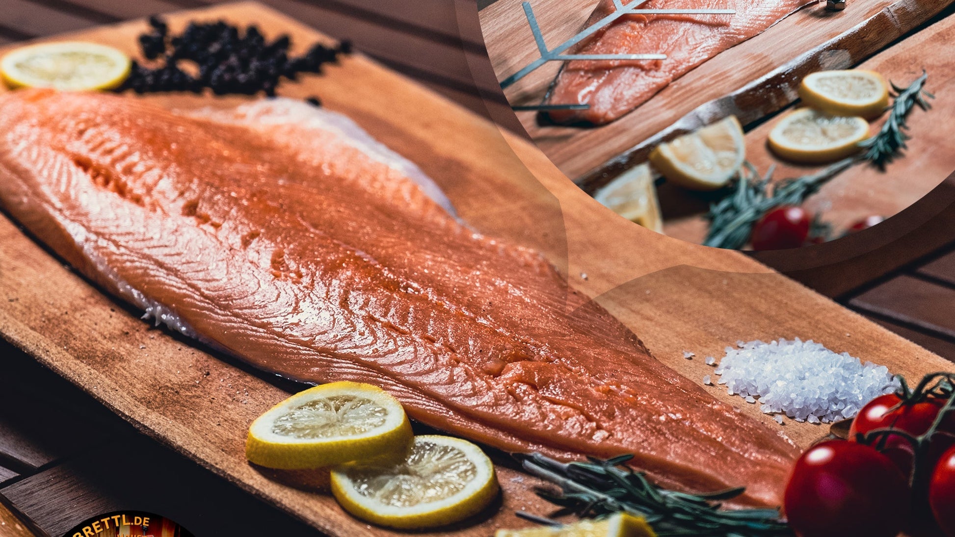 Unsere Flammlachsbretter werden als Wendebrett geliefert, damit Sie Ihr Flammlachs noch komfortabler und gleichmäßiger zubereiten können. Wenn der untere Teil Ihres Filets gar ist, ziehen Sie das Brett aus der Halterung, drehen es um 180° und stecken es wieder in die Brettaufnahme, damit Sie ein schnelleres und gleichmäßiges Ergebnis erreichen.